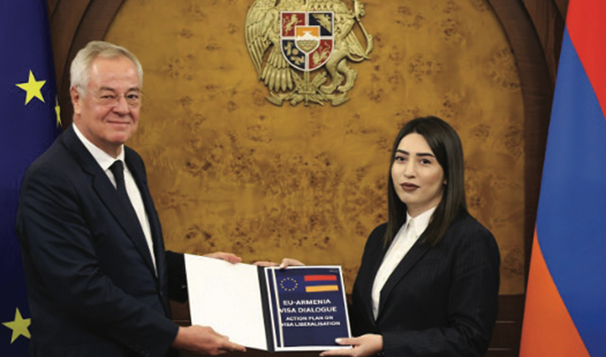 YEREVAN — During his visit to Armenia on November 5, Deputy Director-General for Migration and Home Affairs of the European Commission, Johannes Luchner, presented Armenia with the Armenia–EU Visa Liberalization Action Plan. The document was handed to Armenia’s Minister of Internal Affairs, Arpine Sargsyan, who is the high-ranking official responsible for the Armenia–EU dialogue on visa liberalization. The handover ceremony took place in the presence of Deputy Prime Minister Mher Grigoryan. Upon receiving the document, Minister Sargsyan noted that it marks an important stage in the partnership between Armenia and the European Union, one that has already generated significant public attention and expectations. Both sides expressed satisfaction with the progress achieved so far and emphasized that the official transfer of the Visa Liberalization Action Plan is a testament to the genuine efforts of both parties. The Armenian side reaffirmed its commitment to implementing the measures outlined in the plan, the ultimate goal of which is to ensure dignified, safe, and convenient travel opportunities for Armenian citizens to the European Union. Following the ceremony, Luchner and Sargsyan held a press conference and answered questions from journalists. The delivery of the action plan follows the launch of official visa liberalization talks between Armenia and the EU in September 2024. At that time, Armenian and EU officials outlined a process that focuses on crucial areas for eventual visa-free travel, including document security, border and migration management, the fight against corruption and organized crime as well as upholding fundamental rights. EU representatives have emphasized that all benchmarks must be fully met before the Council of the EU and the European Parliament can make a final decision. In March, the Armenian parliament passed a bill calling on the government to begin the process of applying for European Union membership. The bill, known as the EU Integration Act, was signed into law by the country’s president the following month, making it formally part of Armenia’s legislation.