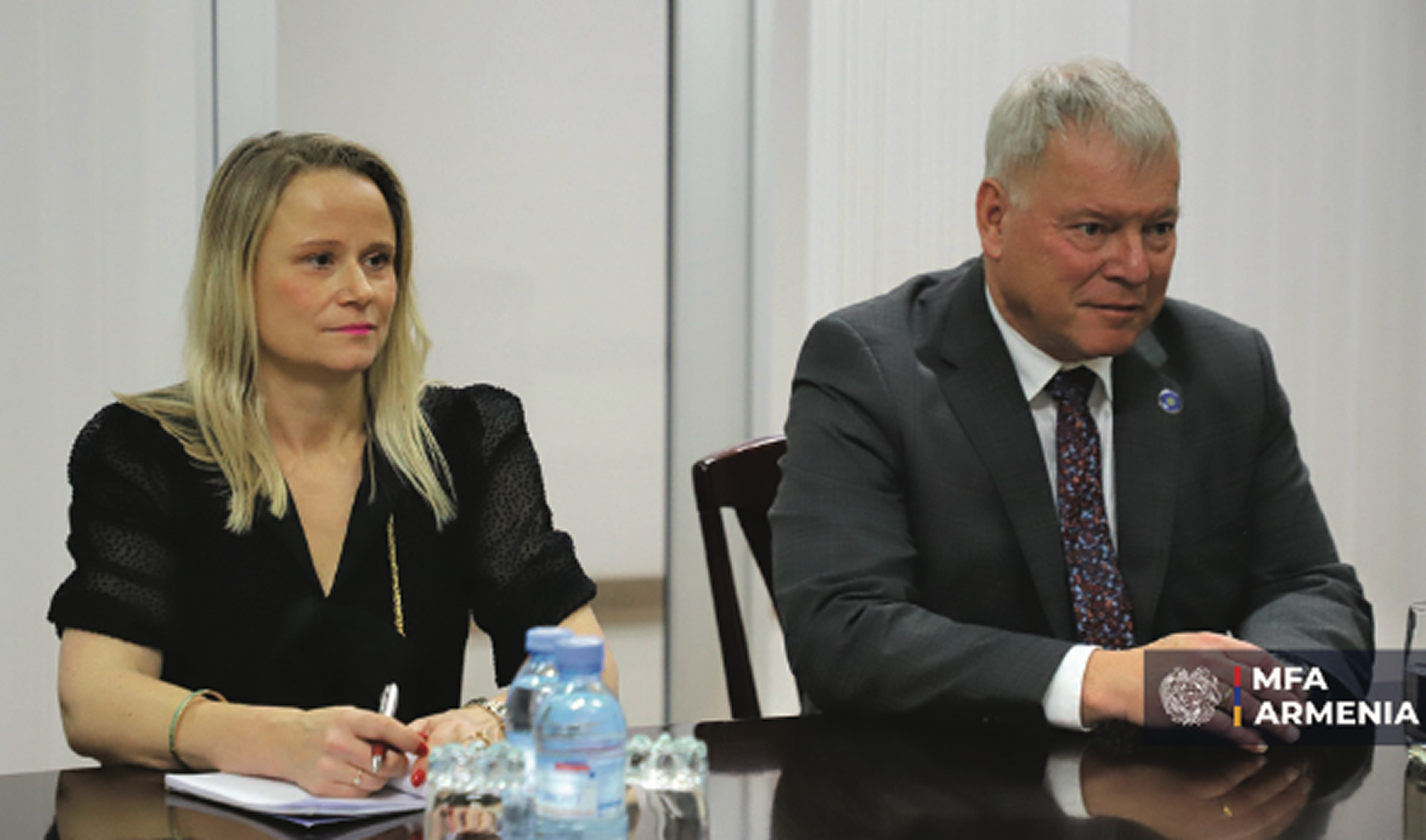 On February 10, Deputy Minister of Foreign Affairs of the Republic of Armenia Robert Abisoghomonyan re- ceived Markus Ritter, Head of the Eu- ropean Union Mission in Armenia, on the occasion of the completion of his duties in Armenia. The Deputy Foreign Minister Rob- ert Abisoghomonyan, expressed his gratitude to the Head of the EU Mis- sion in Armenia, Markus Ritter, for his consistent work and effective coopera- tion, wishing him success in his future endeavors. The Deputy Foreign Minister high- ly appreciated the contribution of the EU Mission in Armenia to ensuring stability in the border areas of Arme- nia. The interlocutors exchanged views on the continuously deepening rela- tions between Armenia and the Euro- pean Union, emphasizing the impor- tance of the Armenia–EU Partnership Strategic Agenda signed last year.